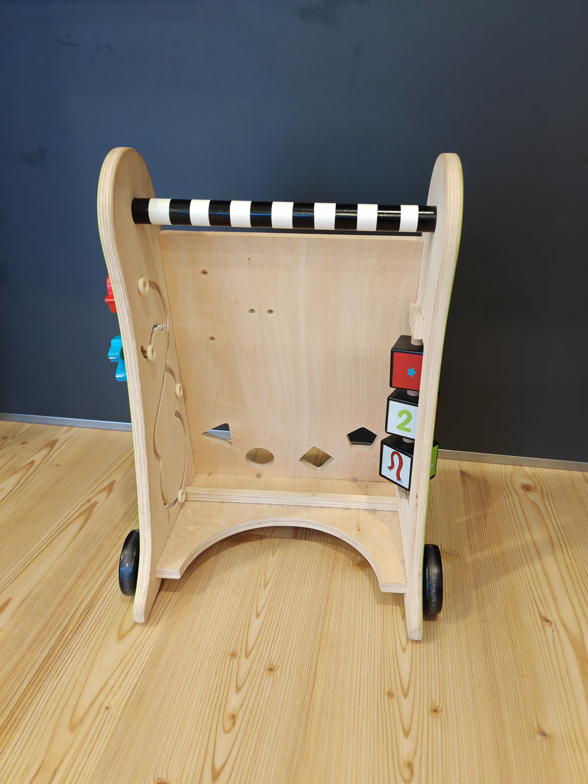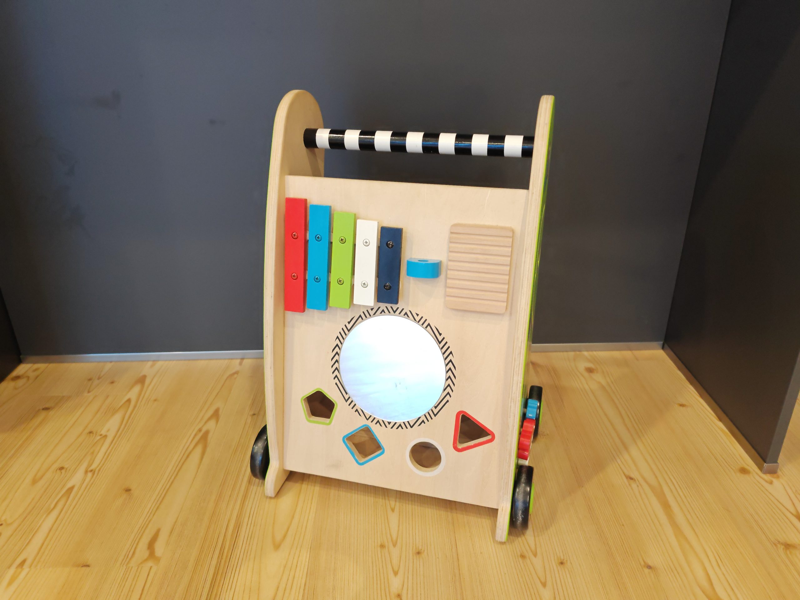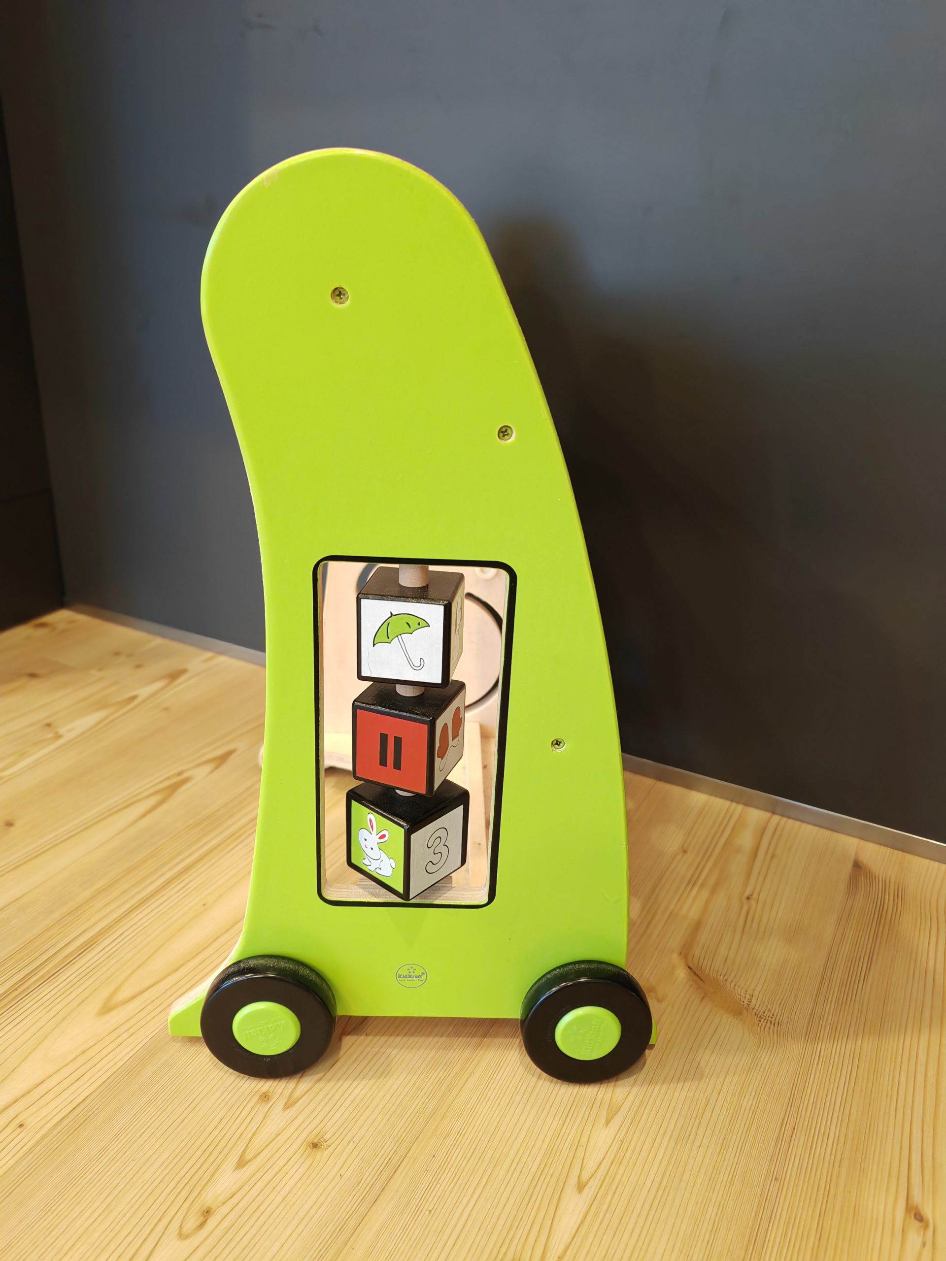 hierbei handelt es sich um einen KidKraft Lauflernwagen aus Holz. Viele Spielmöglichkeiten und nette Details. Es fehlt leider der Stab für die Klanghölzer, aber erfahrungsgemäß funktionieren diese auch mit normalen Bausteinen.